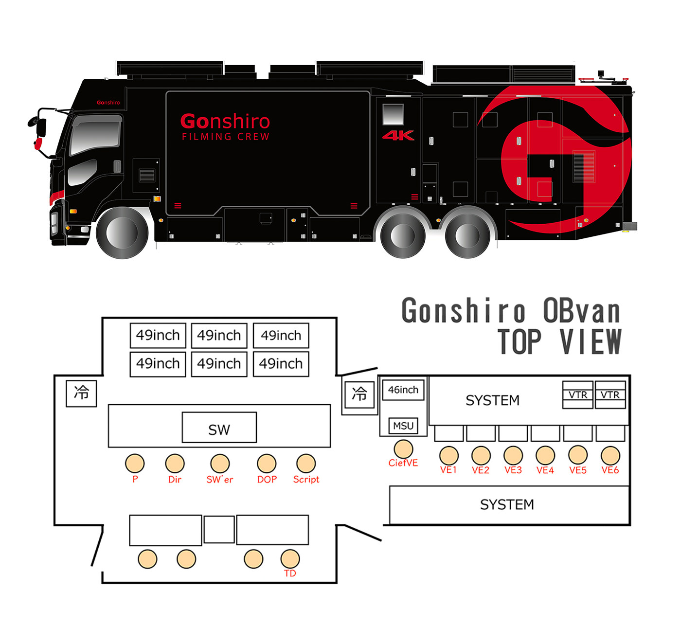 撮影監督が創り出した弊社のスタイリッシュな4K対応中継車は、ひと味違います。